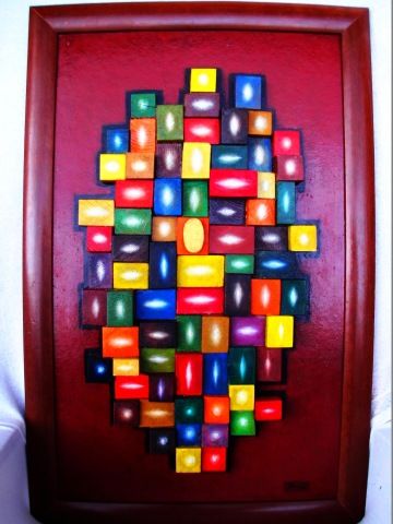 Nápad na pastelkové obrazy přišel před několika roky při poprázdninové přípravě pouzdra pro dceru do školy. Když jsem viděla tu hromadu dřevěných kousků s různobarevnými hlavičkami na velkém bílém talíři, nápad se nabídl sám. Prosté a jednoduché jako slovo samo. Že jsem na to nepřišla dřív! :-)