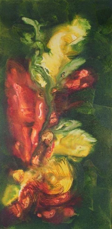 Druhý den vznikl první pastelkový obraz, který je součástí i této výstavy.